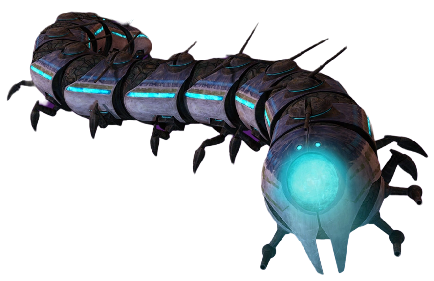 The IAT was a shielded machine[1] that could be piloted by a single Umbaran.[3] It was armed with blaster cannons—four at the front and two at the rear, while ten covered the segmented bodies.[1]