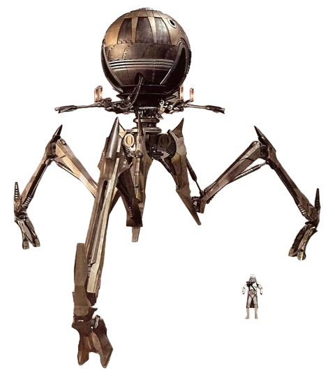 A tri-droid, shown with a clone trooper for scale